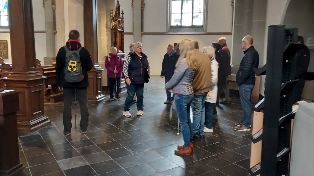 Bild 3 zeigt unsere Gruppe mit Frau Hoppe in der Kirche unter dem Orgelbalkon.