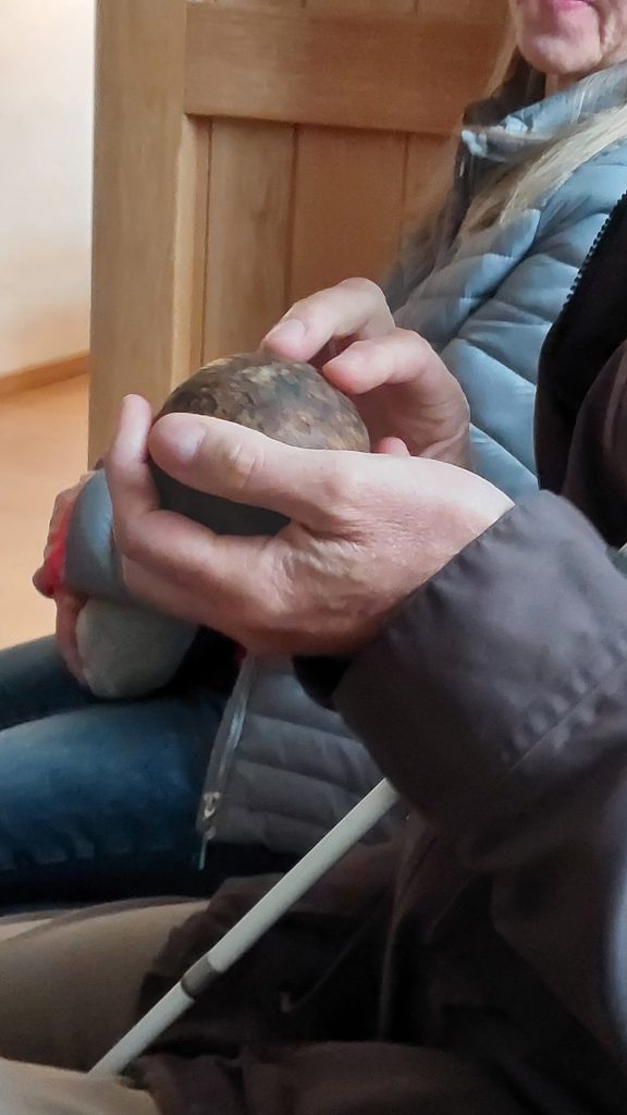 In der alten Kellnerei, die wir dann auch von innen besuchen durften, hielt Frau Hoppe dann noch ein paar besondere Objekte bereit, die für unsere Mitglieder ertastbar waren.