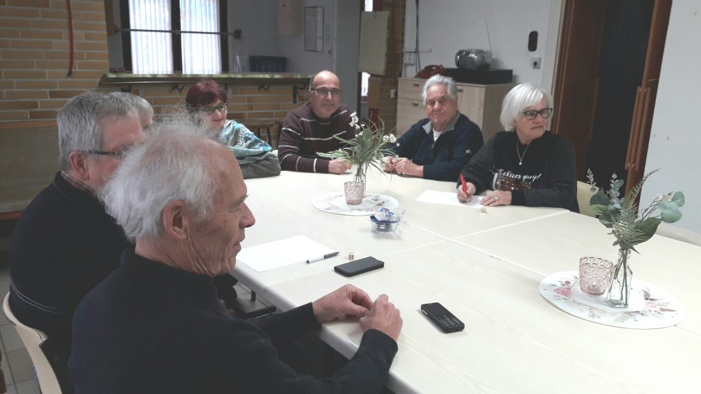 Bild 1 und Titelbild zeigt unsere Mitglieder im Clubraum an einem großen Tisch.
