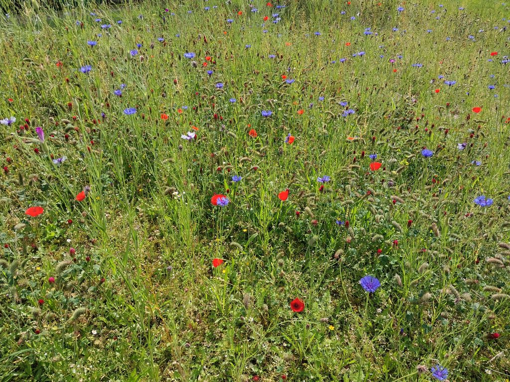 In diesem und in den nächsten Jahren werden sich viele verschiedene ein- und mehrjährige Wildblumenarten zeigen, sehr zur Freude der Wildbienen und Schmetterlinge.